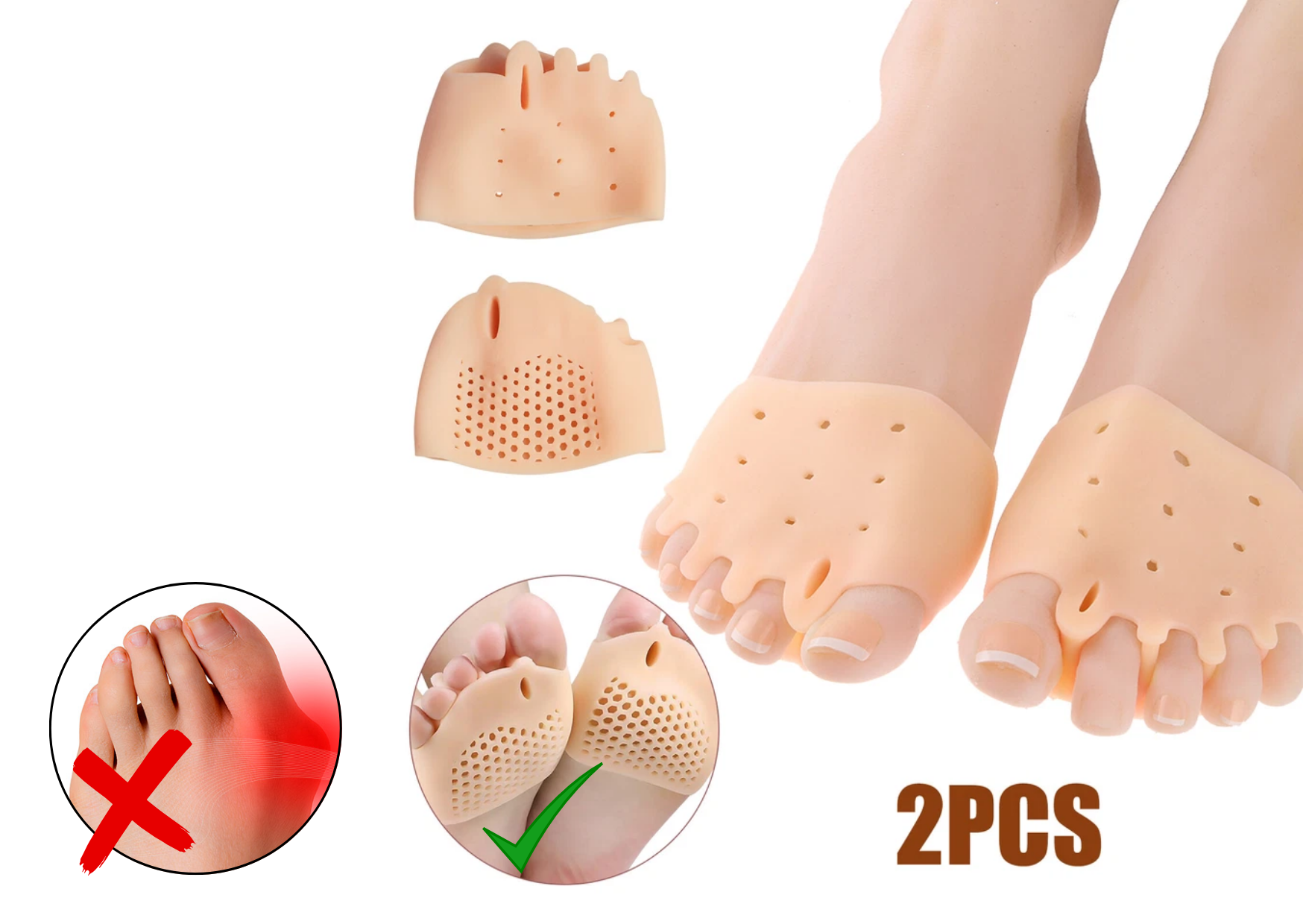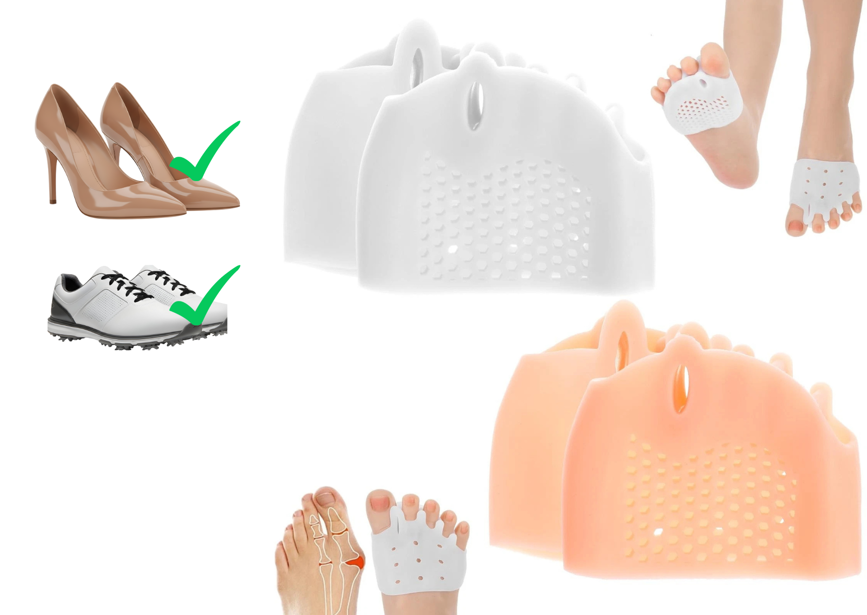• Alivia instantaneamente a dor causada pelo joanete e sobreposição dos dedos